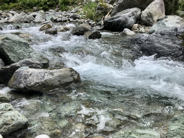 険しい峡谷を縫うようにして、“水質日本一”とも称される清流・川辺川が村の中央を流れています。急峻な地形と清らかな水が形づくるこの環境は、長い年月をかけて独自の岩石を育んできました。